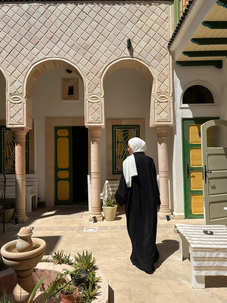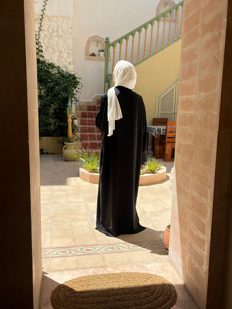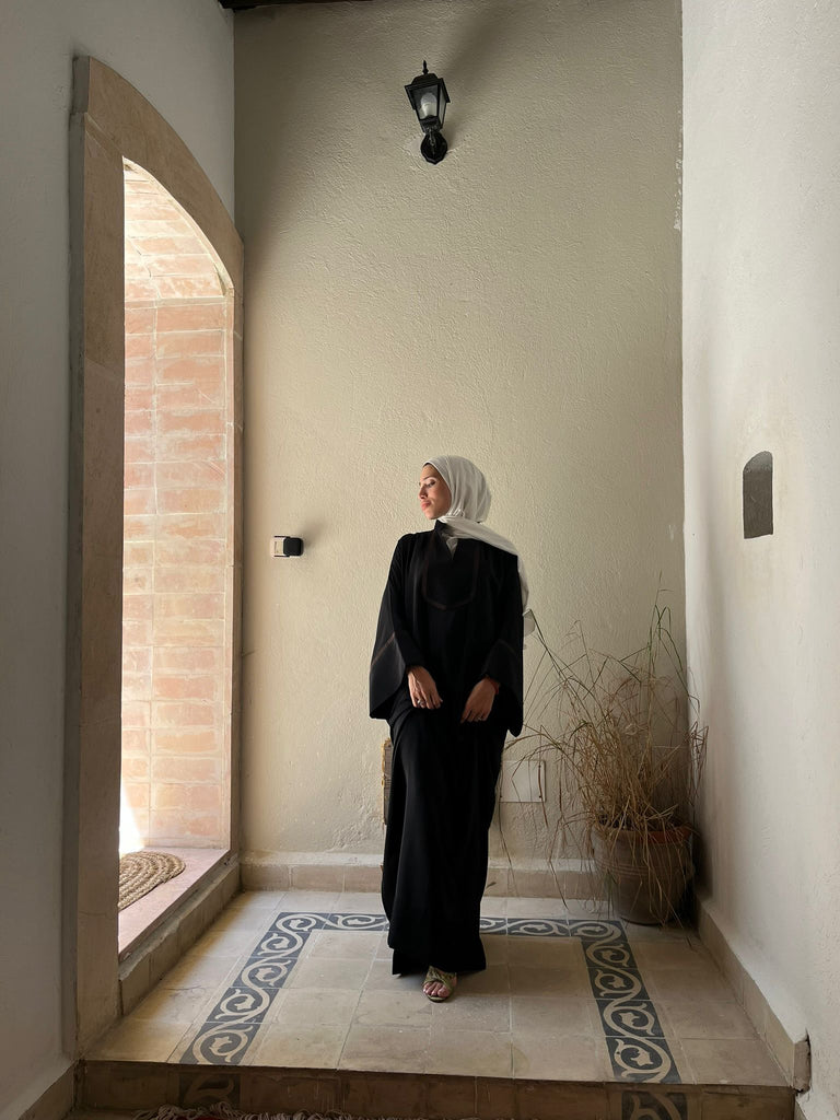 - Un harej traditionnel de couleur marron, tout au long du col et des bras.